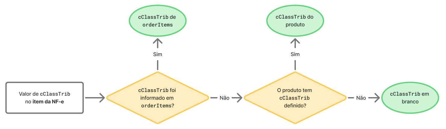 Portanto, o cClassTrib informado no item do pedido (orderItems) tem prioridade em relação ao informado no cadastro de produto. Caso não seja informado em orderItems, o sistema irá considerar o cClassTrib definido para o produto.