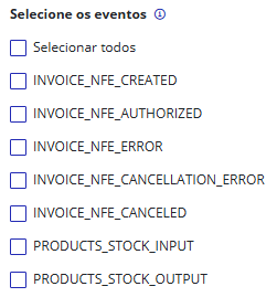 Em sequência à configuração, você precisará selecionar os eventos que deseja receber. Você pode conferir a lista completa de eventos na nossa documentação.